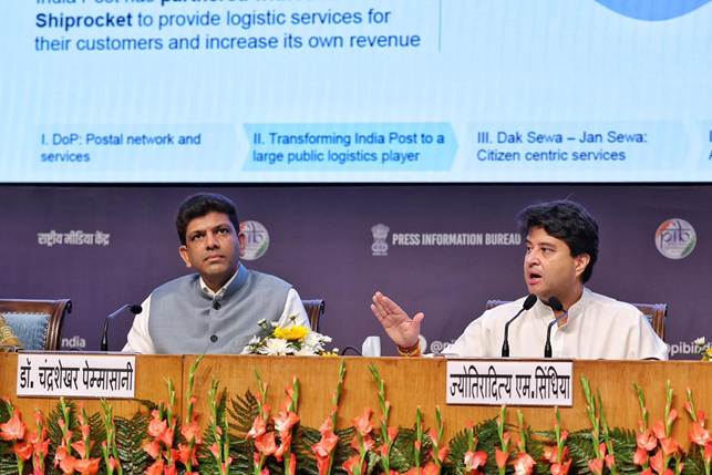 Union Minister of Communications and Development of North Eastern Region, Shri Jyotiraditya M. Scindia, chaired a joint media briefing at the National Media Center, New Delhi. Highlighting the achievements of the Department of Posts (DoP), and the Department of Telecommunications over the past year.
